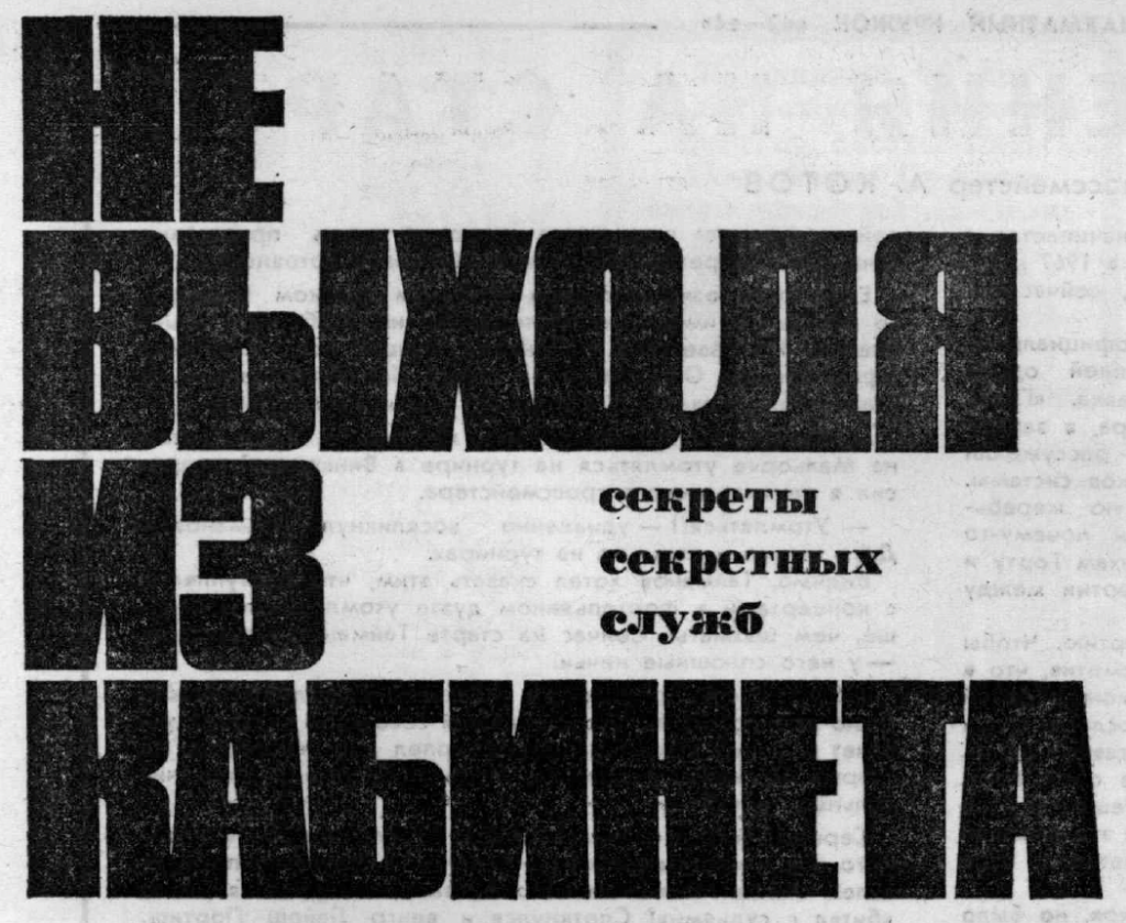 Sometimes during research, you come across a single document that, in itself, justifies the entire endeavour. This happened some weeks ago, when I stumbled upon an article from 1970, originally published in Nedelya, a popular Soviet weekly at the time. Written by “F. Sergeyev”, almost certainly a pseudonym, the article with the title ‘Without leaving the office’ (original: Не выходя из кабинета) describes the use of information from open sources by the intelligence services of “imperialist countries”, with which obviously primarily the United States are meant.